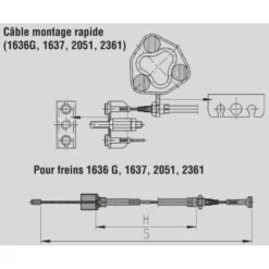 3. A l’aide du raccord par pression, accrocher le câble dans l’oeillet d’accrochage. Sur les freins1636G/1637/2051/2361, l’accrochage est effectué latéralement.