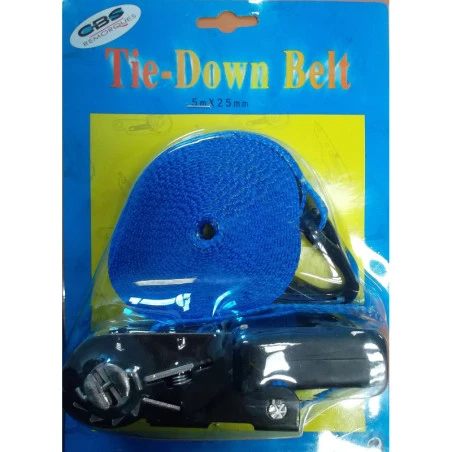 Sangle polyestère petit modèle 5000×25 à cliquet avec crochet.
