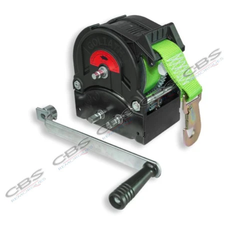 Le treuil TS 1600 est fourni complet avec sa manivelle, sa sangle de haute qualité de 8m x 5cm, et son crochet.